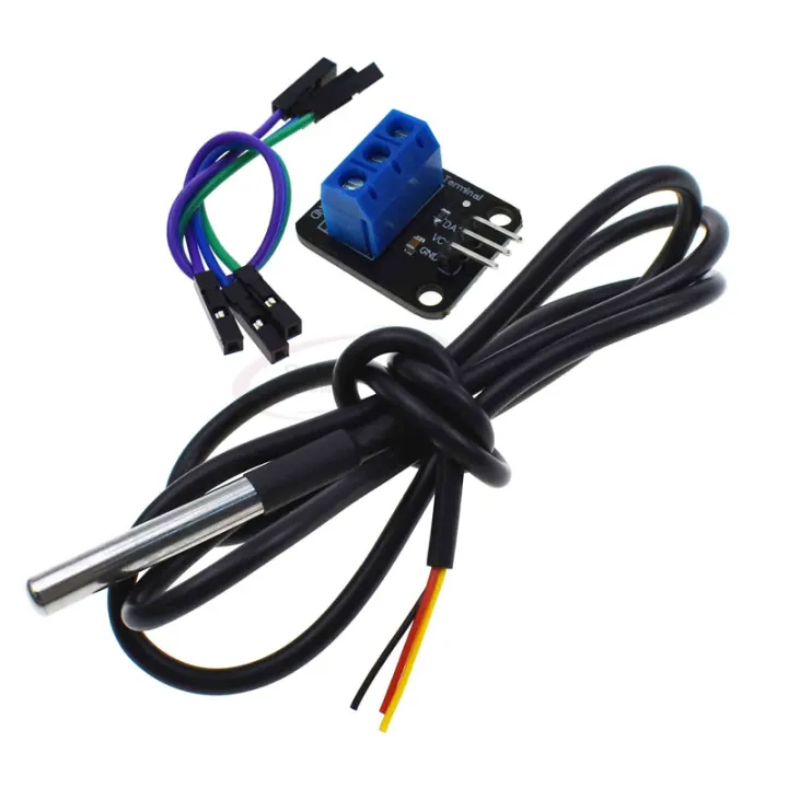 DS18B20 Temperature Sensor Module Kit Waterproof 100CM Digital Sensor Cable Stainless Steel Probe Terminal Adapter