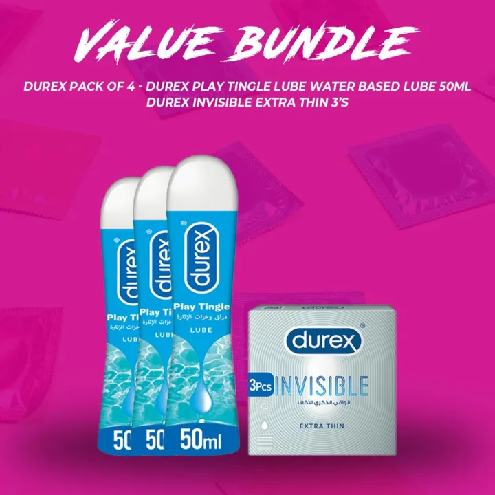 Durex Pack of 4 - Durex Play Tingle Lube 50ml x 3 + Durex Invisible Extra Thin 3's