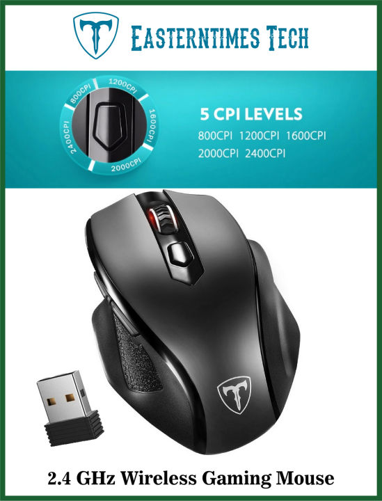 EASTERN-TIMES (ET Tech) D-19 - 2.4GHz, DPI Adjustable Wireless Gaming Mouse, Full Size Ergonomic Design Mouse Super Long Standby Battery Time for Notebook/PC/Laptop