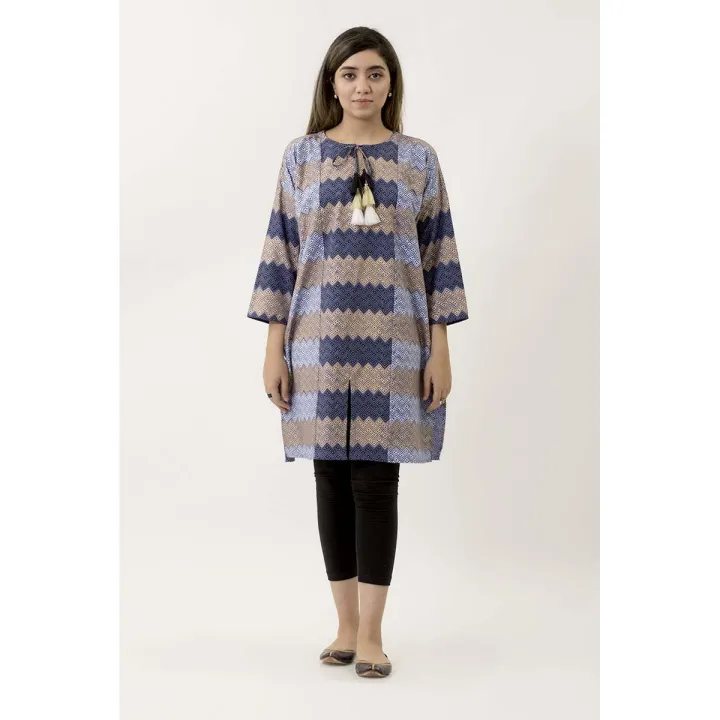 EGO Winter Collection 2019 Zigzag Blue Cotton Kurti For Women