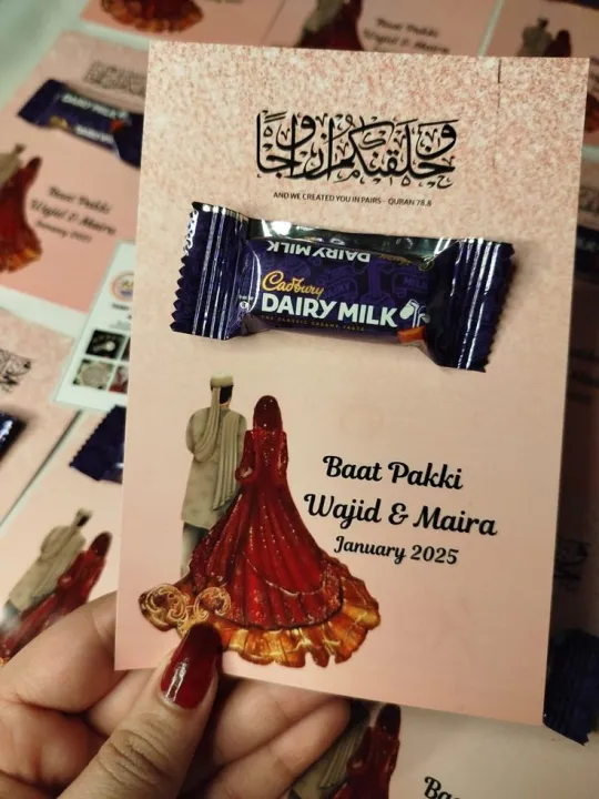 Elegant Baat Pakki Favor Card with Chocolate – Personalized Engagement Announcement Baat pakki onvitations cards , weddinge cards , events cards , birthday cards