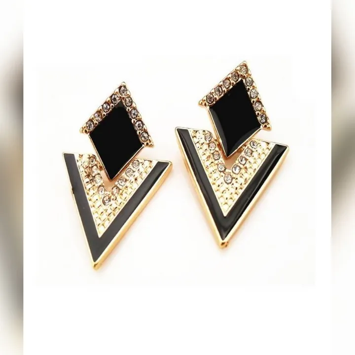 Elegant Black Earrings For Women - Gold & Black Color Earrings