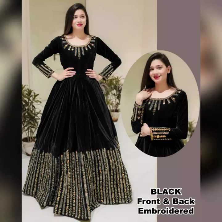 Elegant Front Back Heavy Embroidered Maxi Dress for Women 2-Piece - Fancy Wedding Dresses for Women