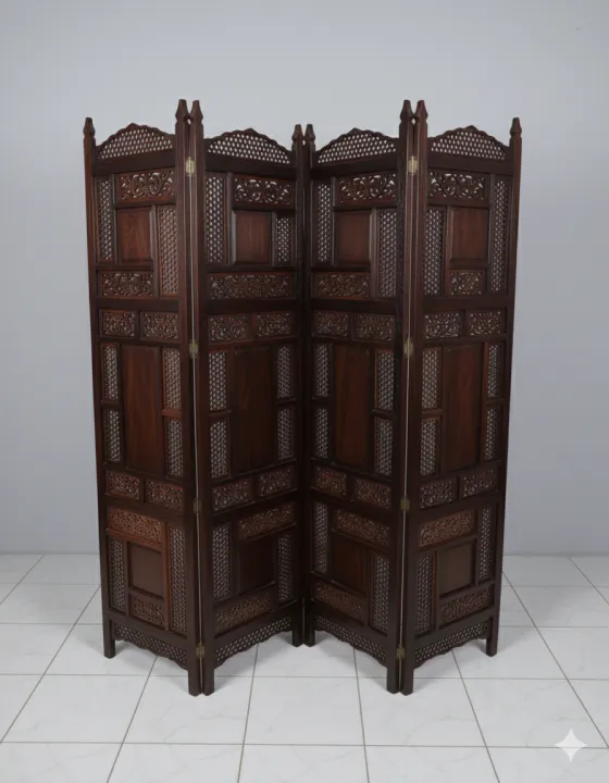 Elegant Hand-Carved Sheesham Wood Folding Screen Room Divider