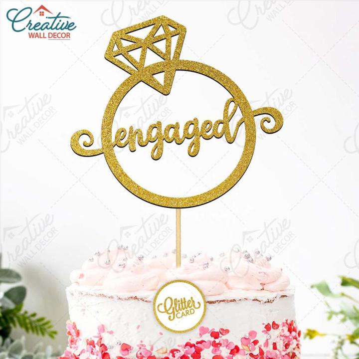 Engaged%20Cake%20Topper%20for%20Cake%20Decoration,%20Bridal%20Shower,%20Wedding%20&%20Engagement%20Party%20Celebration%20Toppers%20in%20Gold%20-%20Image%201