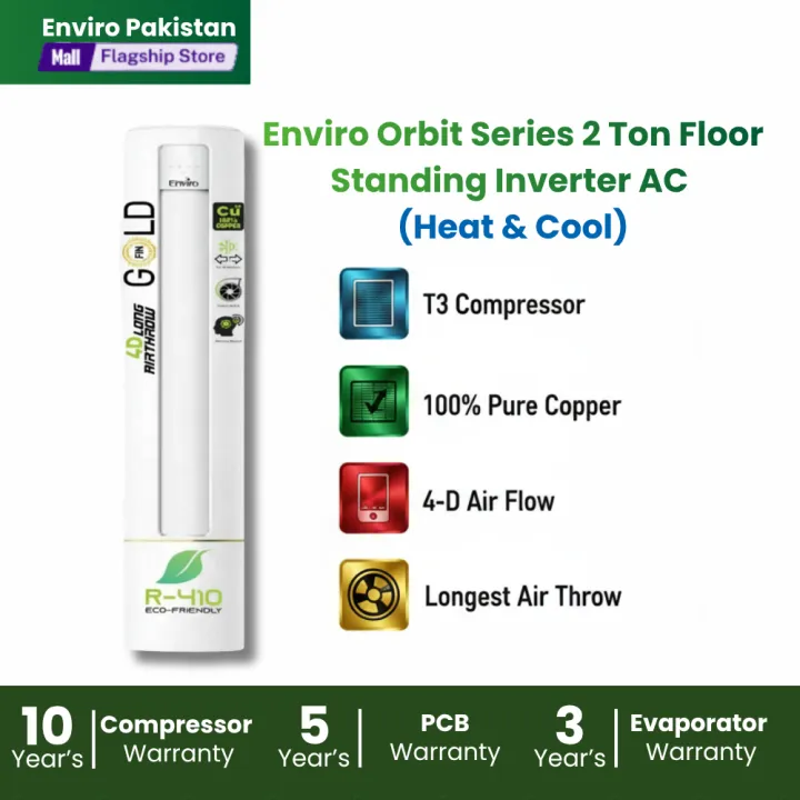 Enviro Orbit Series EAC-24 H and C 2 Ton Floor Standing Inverter AC Heat and Cool T3 Compressor 100 Percent Copper R410 Eco Friendly Long Air Throw Best Inverter AC in Pakistan