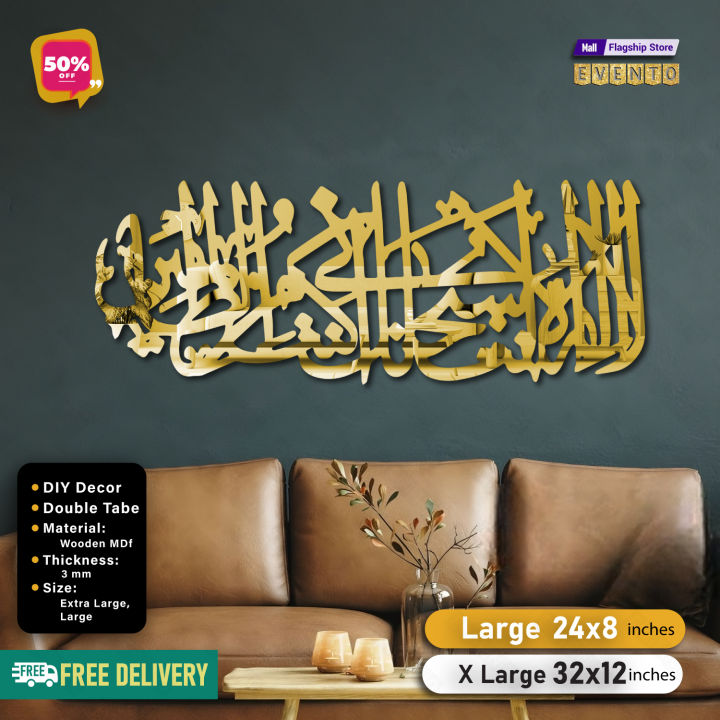 EVENTO Acrylic Wooden Wall Islamic Calligraphy Hanging Decor Panel Frame Scenery 3D DIY Laser Cut Cnc Wall Art Design Decoration For Home Decor Living Room And Offices And For Gifts Item