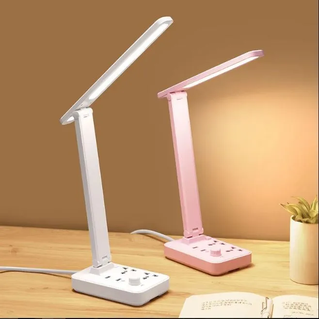 Extension wire outlet With 2 universal outlet and 2 USB port charging with foldable reading lamp LED table lamp night light Extension Power Strip with Safety Switch Protection long Extension Cord USB desk lamp power socket