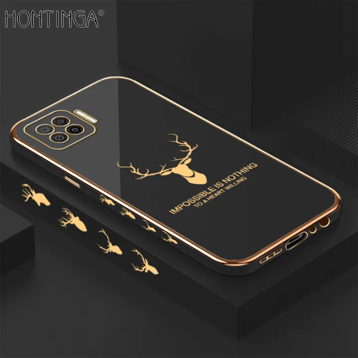 Hontinga for OPPO F17 A73 2020 Back Cover Luxury 6D Plating Lucky Side Pattern Shiny Case Soft Silicone Square Mobile Cover