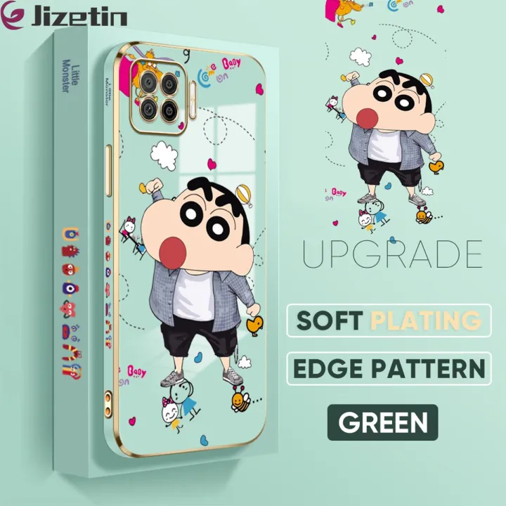 Jizetin (Free Lanyard) for OPPO F17 A73 2020 Back Cover Clenched Little Boy Luxury 6D Plating Case Side Pattern Soft Silicone Square Phone Cases