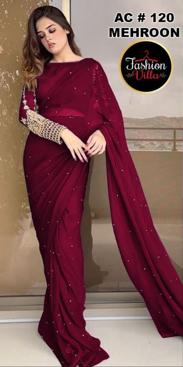 Fancy Stitched Saree for Girls – Embroidered Silk & Chiffon