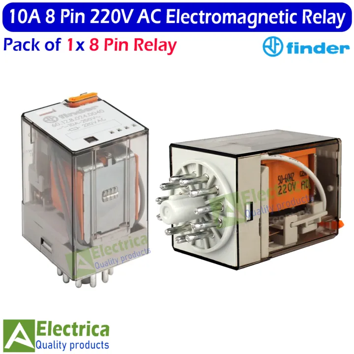 finder%208%20Pin%2010A%20Coil%20220V%20AC%20Rail-Mount%20Electromagnetic%20Power%20Coil%20Relay%2010A%20AC%208%20Pins%20relay%20by%20Electrica%20-%20Image%201