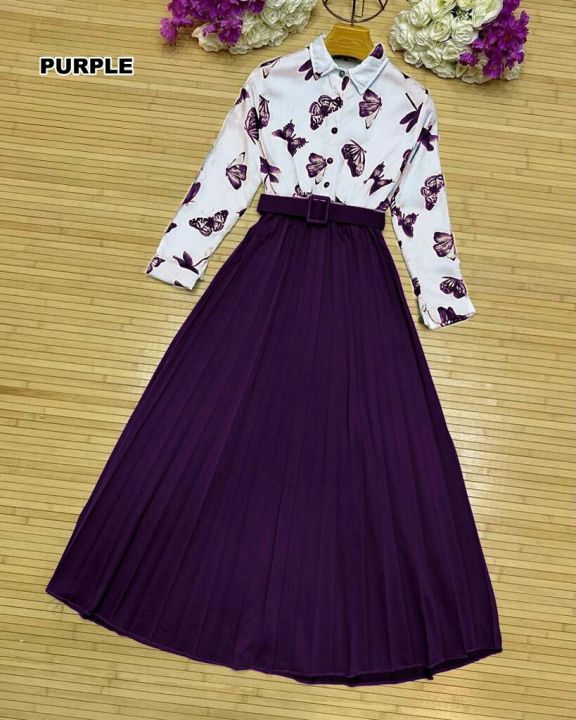 Firangi Stitched Butterfly Printed Top With Skirt & Belt 2Pc Dress For Girls