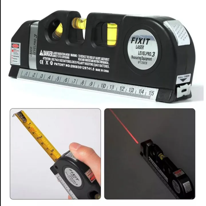 Fixit Laser Level Pro 3 4in1 Multi-Purpose Measuring Tool With 8 Feet Tape