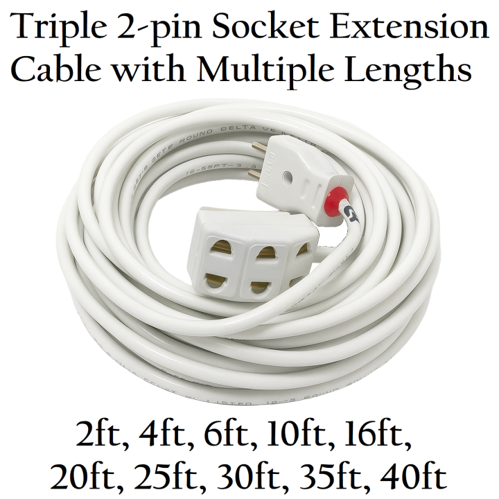 Flexible Extension Cable with Triple 2-pin Socket Male Female Electric Plug HQ 40/76 Two Core Round Wire Cord for Multipurpose uses Electrical Extension Board