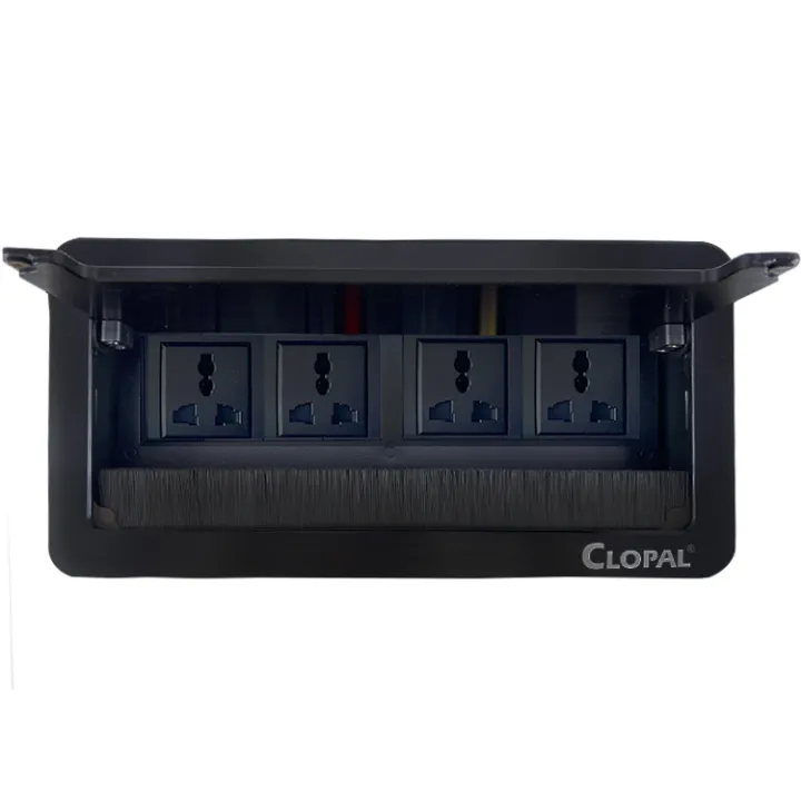 Flip up Tabletop Brush Connectivity Box with 4 Multi Light Plug - Black