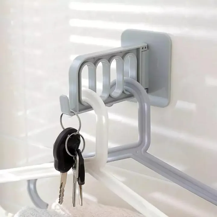 Folding Wall Door Mounted Adhesive 4 Holes Clothes Hanger Hook Storage Rack