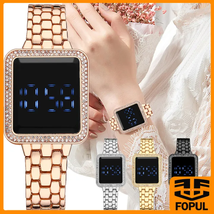 Fopul Mall Ladies Luxury Diamond Watch Steel Band Diamond Touch Screen LED Electronic Watches