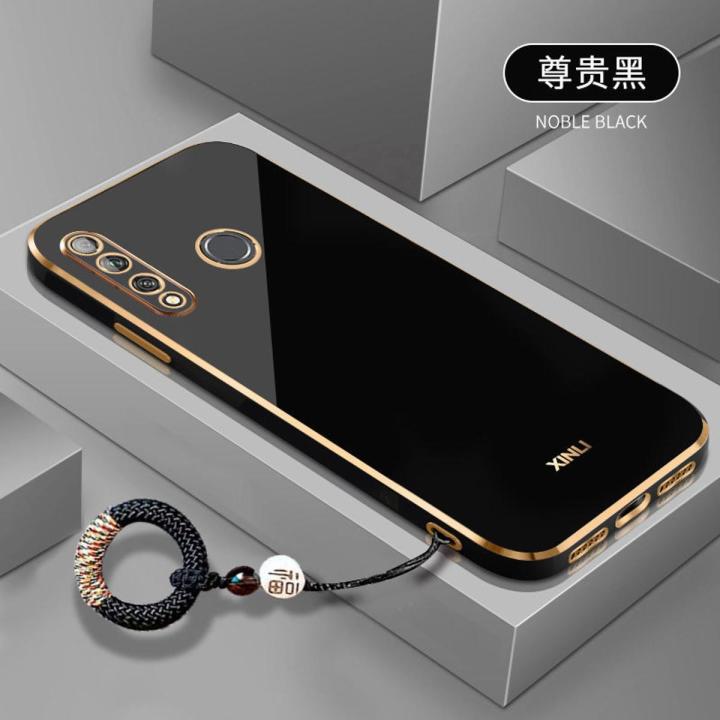 For Huawei Honor 10i Back Cover with Non-Slip Rope Pull Ring Shiny Plating Square Bumper Protective Case Camera Lens Protection Soft Silicone Shockproof Mobile Phone Cases
