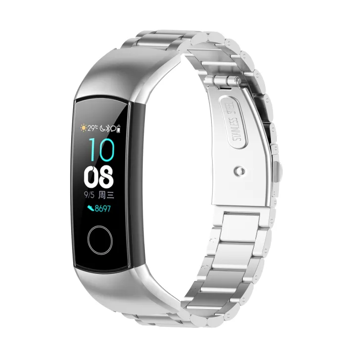 For Huawei Honor Band 4 (CRS-B19) / Honor Band 5 (CRS-B19S) Three Beads Steel Wrist Strap Watchband(Rose Pink)