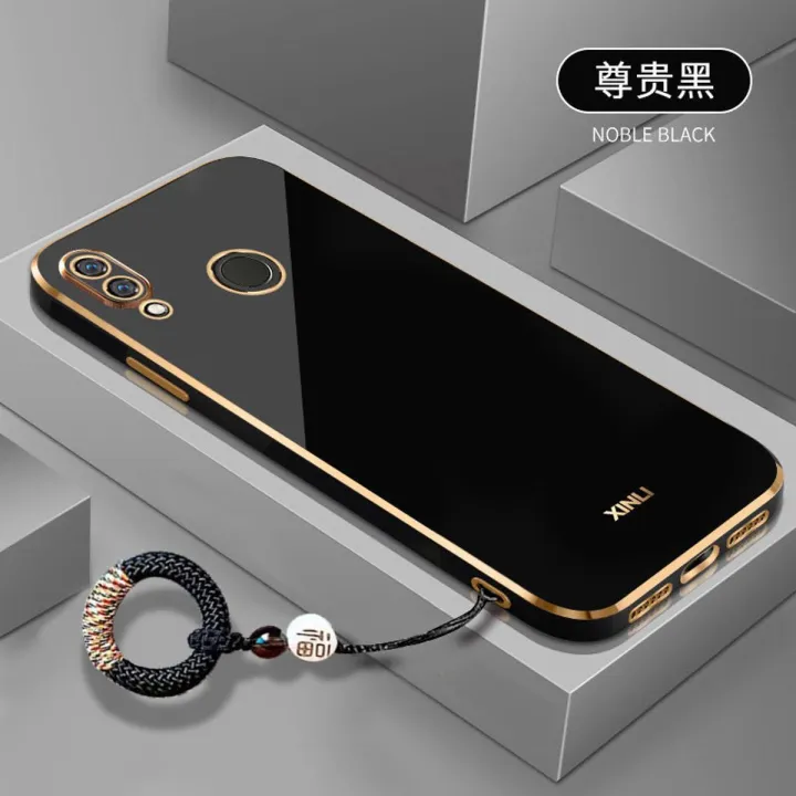 For Huawei Nova 3i Back Cover with Non-Slip Rope Pull Ring Shiny Plating Square Bumper Protective Case Camera Lens Protection Soft Silicone Shockproof Mobile Phone Cases