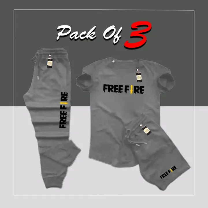 Free Fire Printed 3 in 1 Tracksuit For Men & Boys - Soft & Comfortable Fabric (T Shirt+Trouser+short) Tracksuit