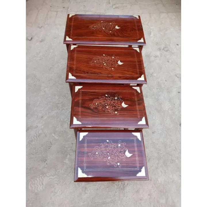 Furniture & Decor Chinioti Solid Sheesham Wood Nesting Tables Set of 4 (Coffee table Serving table , Furniture Wooden ) - Strait D13- Brown