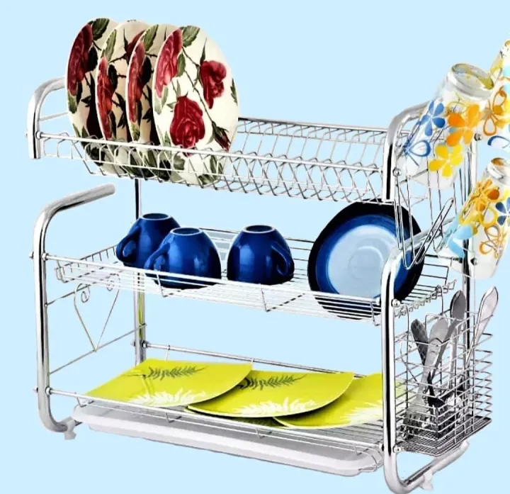 G-Shaped 3-Tier Dish Rack Kitchen Organizer for Plates, Spoons, and Cups