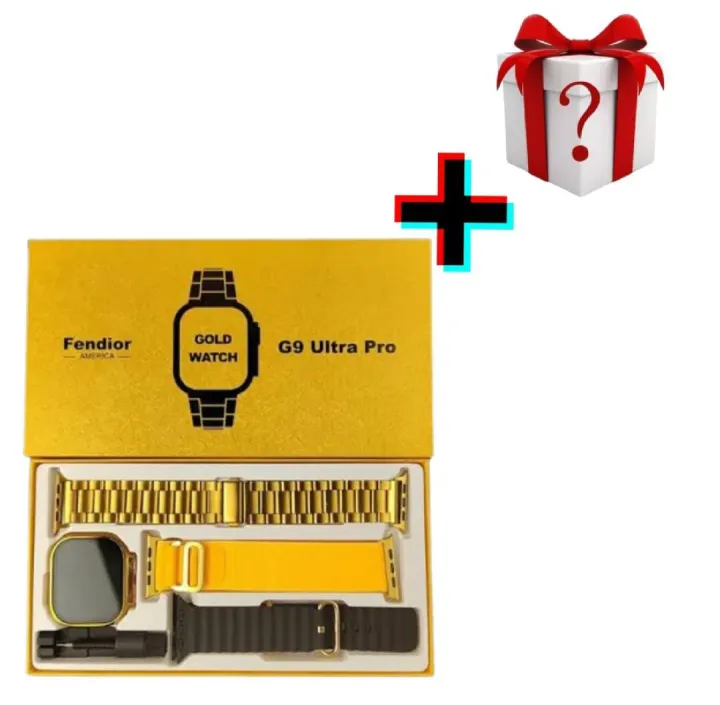 G9 Ultra Pro / S9 Ultra Max Smart Watch (Golden Edition) - 49MM Ultra Series 8 - NFC - Bluetooth Call - Customize Wallpaper - Wireless Charging - Real Screws and Straps Locks