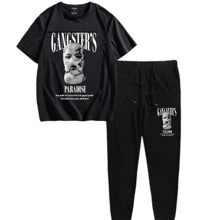 Gangster Printed Summer Cotton Half Sleeves O Neck Trouser & Tshirt For Men & Boys
