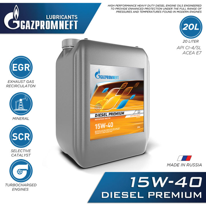 Gazpromneft Diesel Premium 15W-40 Heavy Duty Diesel Engine Oils 20 Liter Mineral Base Oil Protect Your Engine & Temperatures