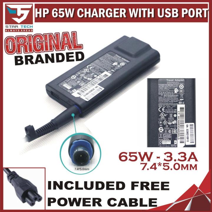 Genuine HP HSTNN-DA14 Compatible with HP ProBook 6555b, 6545b 65W 19.5V 3.33A 7.4 X 5.0mm Slim Travel AC Adapter with Mobile charging port 5V 1.5A