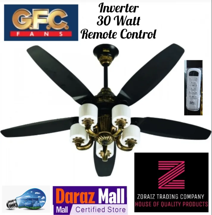 GFC Fans Ceiling 56’’ AC 30 Watts Inverter Fanoos Model 56'' Pure Copper Winding Solar Fan Energy Saver Black Color