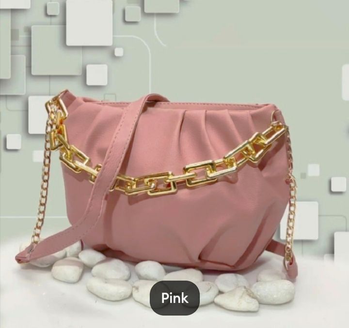 Girls Shoulder Bag with Stylish Golden Chain and Long Strap Crossbody Wallet