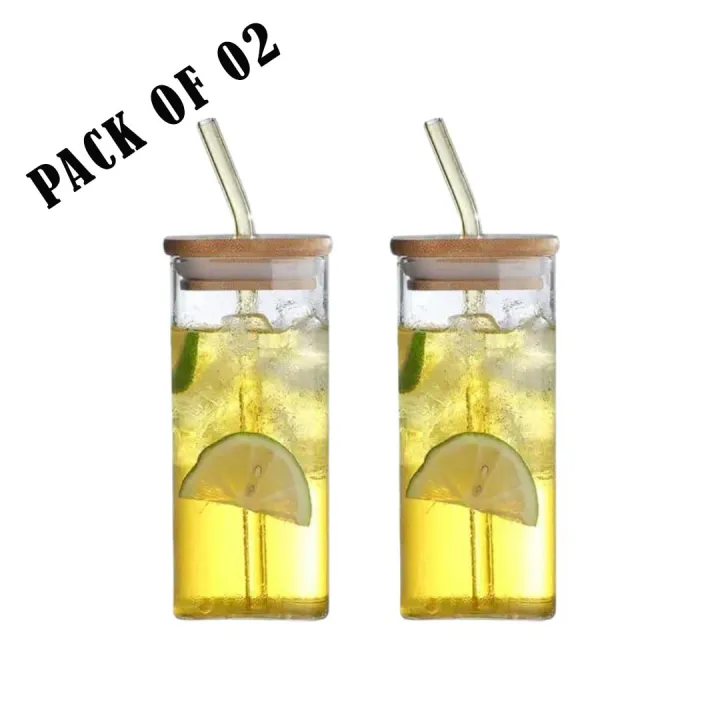 Glass Cup with Straw and Bamboo Lid - Reusable Glass Jar for Iced Coffee, Milk & Cocktail Tumbler, Boba Bubble & Smoothie Cup, Mason Jar - Water Set - Cup for Tea, Coffee Mug - Juice Glass with Straw, Drinkware & Glassware Cold Coffee Cups, Mugs & Saucers