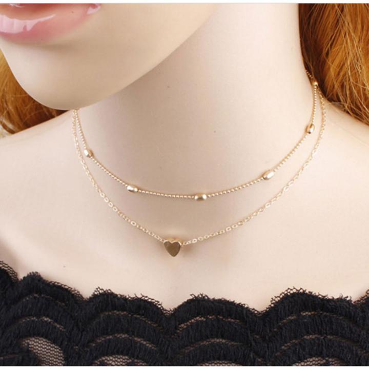 Gold Love Heart Multi Layer Beads Chocker Necklace For Girls