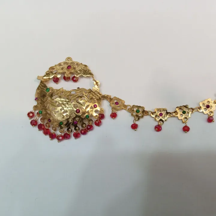 Gold-Plated Traditional Bridal Manjus Nath with Red Beads – Raaikal Jewels
