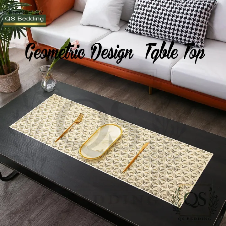 Gold Tabletop, Table Runner, Center Table Dressing Table Geometric Design Non-slip Table Runner Non-Slip Dining Mat (13 inch x 36 inch) - QS Bedding