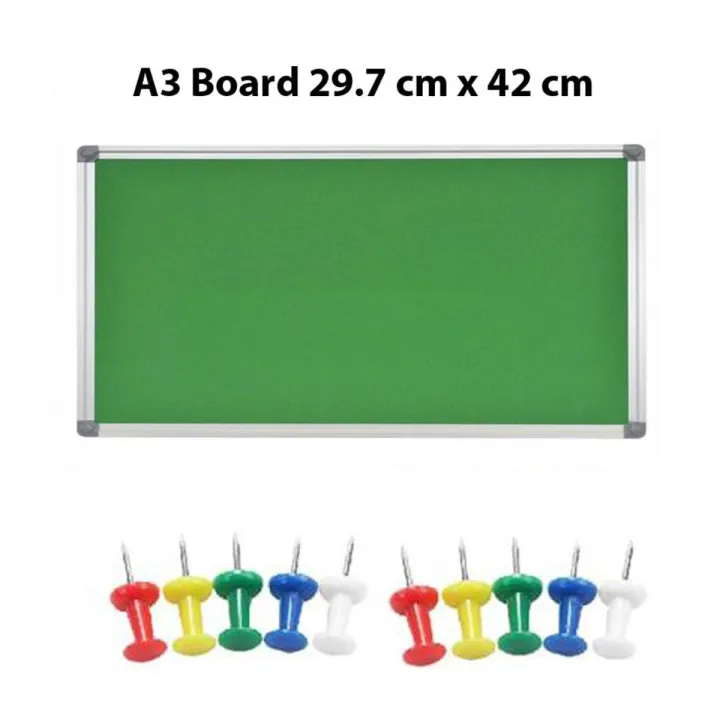 GREEN NOTICE FELT PUSH PINS BOARD Size A3 (29.7 cm x 42 cm)