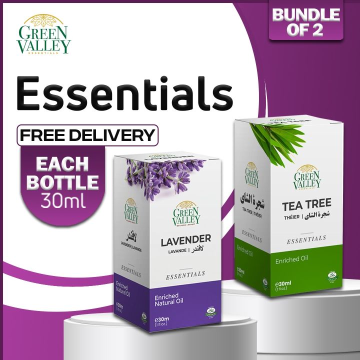 Green Valley Pack of 2 Oils, Tea Tree oil & Lavender Oil , For Acne and Blemishes Skin , To Remove Pimples 30ml Each Bottle
