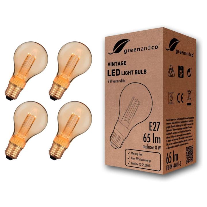 Greenandco Decorative LED Edison Bulbs E27 A60 Vintage Filament Bulbs Lights for Home & Café | 2W Energy Saving Bulbs LED 1800K Bulbs Warm Light | Retro Industrial Bulbs for Room Decoration & Bulbs for Hanging Lights | Non-Dimmable No Flicker 230V Bulbs f
