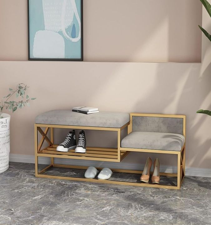 Grey Tufted Bench - Shoe Bench with 2 Comfortable Seats - Shoe Storage Organizer Tier Entryway Shoe Bench Organizing Rack with Velvet Cushion - Entryway Bench with Shoe Changing Stool - Perfect Corner Bench for Small Spaces and Narrow Storage Solutions