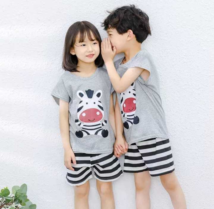 Grey Zebra Printed Kids Short Sleeve Kids Wear