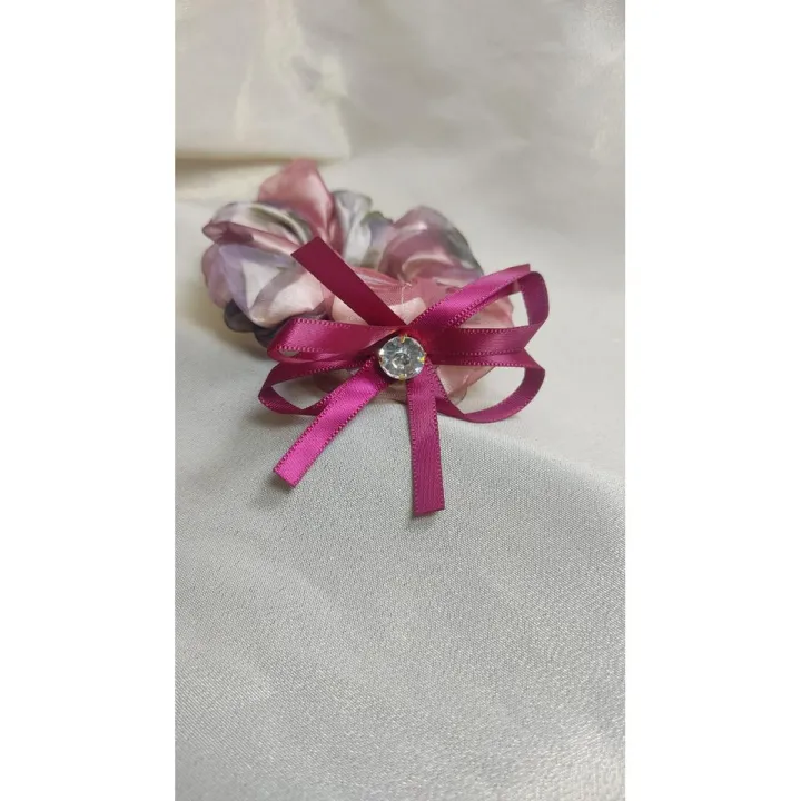 Hair Pony In Double With Ribbon Bow And Stone- Korean Style Poni-Hair Tie Poni -Hair Accessories