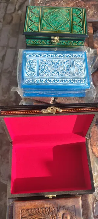 Handmade Wooden Jewelry Box with Colorful Naqshi Art - 8x5 Inches