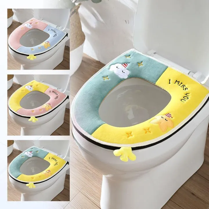 【Happier】 Cute Cartoon Bathroom Toilet Seat Cover Universal Thickened Plush Toilet Cushion Overcoat Zip Toilet Case Mat Household Supplies