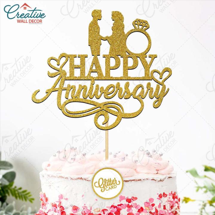 Happy%20Anniversary%20Cake%20Topper%20for%20Cake%20Decoration,%20Wedding%20Anniversary%20&%20Engagement%20Party%20Celebration%20Toppers%20in%20Gold%20-%20Image%201