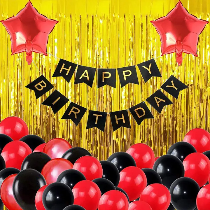 Happy Birthday Theme Decoration Set Happy Birthday Card & Foil curtain Set For Charming Birthday Party With Foil Stars Balloons and Latex Balloons Set-Beautiful Birthday Accessories