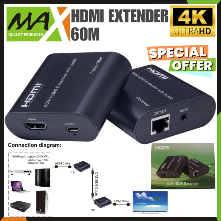 HDMI Extender 60m/197ft HDMI Extender Rather Long HDMI Cable, Over Single Network cat5e/6 RJ45 Ethernet Cable up 60m. Buy MaxShop.