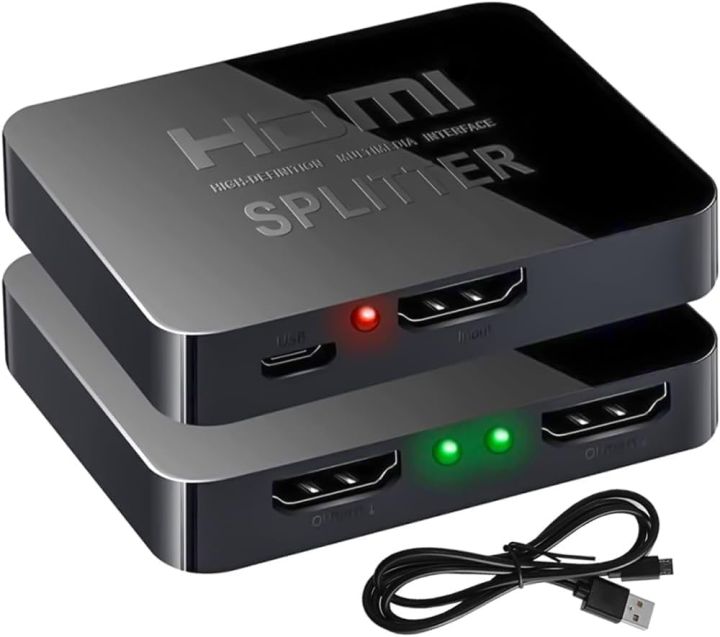 HDMI Splitter 1 in 2 Out, SELIACR 1080P Full HD 3D 4K HDMI Splitter with Micro USB Power Cable for Dual Monitors Supports MacBook, Xbox, PS4, PS3, Blu-Ray Player, DVD, HDTV